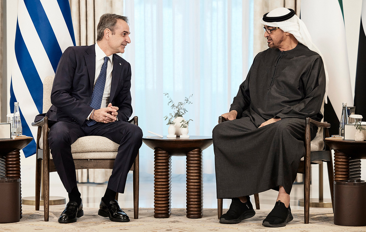 O πρωθυπουργός Κυριάκος Μητσοτάκης συναντήθηκε στο Άμπου Ντάμπι με τον Πρόεδρο των Ηνωμένων Αραβικών Εμιράτων, Σεΐχη Mohamed bin Zayed Al Nahyan.