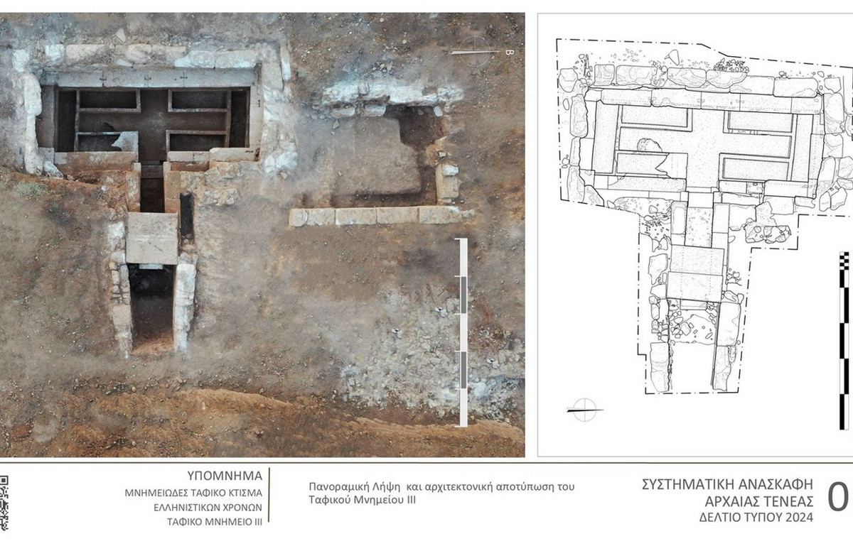 «Φέτος για πρώτη φορά αποκαλύφθηκε στην Κορινθία μνημειώδες ταφικό κτίσμα ελληνιστικών χρόνων κατά τα πρότυπα των μακεδονικών τάφων. Τα δε ευρήματα από το εξωτερικό και το εσωτερικό του παραπέμπουν ξεκάθαρα στη μακραίωνη χρήση του και σε λατρεία που συνδέεται με την ίαση». Τα παραπάνω αναφέρει σημερινή ανακοίνωση του ΥΠΠΟ σχετικά με τις εργασίες της συστηματικής αρχαιολογική έρευνας στο Χιλιομόδι Κορινθίας, στο πλαίσιο του ερευνητικού προγράμματος «Αρχαίας Τενέας», που ολοκληρώθηκαν τον Οκτώβριο του 2024.