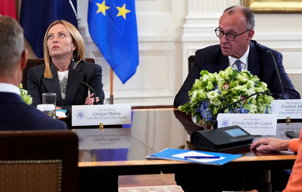 Ωστόσο, σύντομα κατέστη σαφές ότι η πρωθυπουργός της Ιταλίας Τζόρτζια Μελόνι, η οποία έχει αποκτήσει φήμη πραγματίστριας στις Βρυξέλλες, θα επιχειρούσε να μπλοκάρει και τα δύο βασικά εγχειρήματα του Μερτς. Εξασφάλισε την αναβολή της συμφωνίας Mercosur έως τον Ιανουάριο και συνεργάστηκε στενά με τον Μπαρτ Ντε Βέβερ για τη σταδιακή αποδόμηση του σχεδίου αξιοποίησης των ρωσικών περιουσιακών στοιχείων. «Η κοινή λογική επικράτησε», δήλωσε η Τζόρτζια Μελόνι.