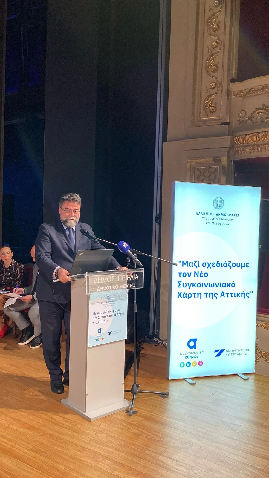 Η 5η ημερίδα με θέμα «Μαζί σχεδιάζουμε τον Νέο Συγκοινωνιακό Χάρτη της Αττικής» πραγματοποιήθηκε, σήμερα, στον Δήμο Πειραιά, σηματοδοτώντας ένα ακόμη ουσιαστικό βήμα για τη βελτίωση του παρεχόμενου συγκοινωνιακού έργου στην περιοχή.