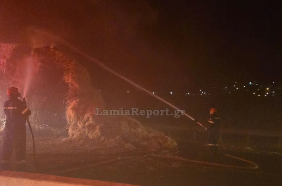 Οδηγός φορτηγού που μετέφερε άχυρα με επικαθήμενο όχημα, αντιλήφθηκε ξαφνικά πως το φορτίο του τυλίχθηκε στις φλόγες, στο 33ο χιλιόμετρο, περίπου 500 μέτρα πριν την έξοδο της Ξυνιάδας.
