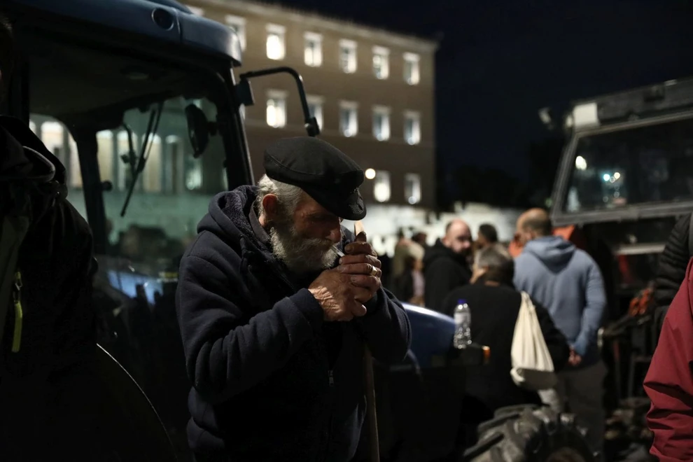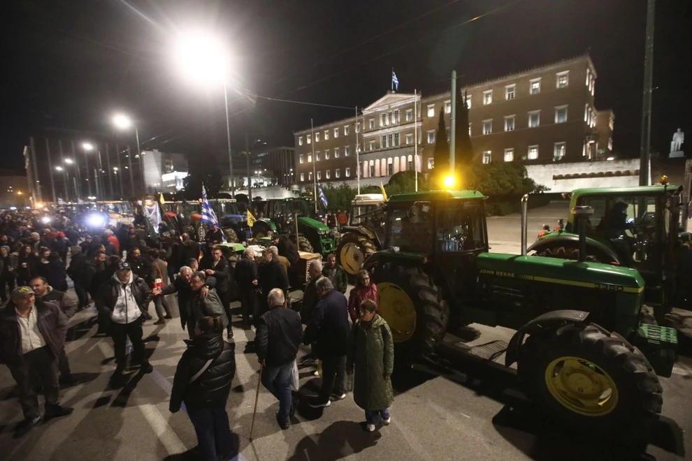 Οι αγρότες παρέμειναν όλη τη νύχτα μπροστά από τη Βουλή, έχοντας παρατάξει δεκάδες τρακτέρ μετά το μαζικό συλλαλητήριο που πραγματοποίησαν το μεσημέρι της Παρασκευής.