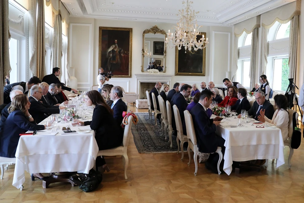 Από ελληνικής πλευράς παρίστανται ο Υπουργός Εξωτερικών Γιώργος Γεραπετρίτης, ο Νίκος Δένδιας, ο Κυριάκος Πιερρακάκης, ο Τάκης Θεοδωρικάκος, η Ντόρα Μπακογιάννη, ο Γιώργος Φωτήλας, καθώς και η κα Παπαδοπούλου.
