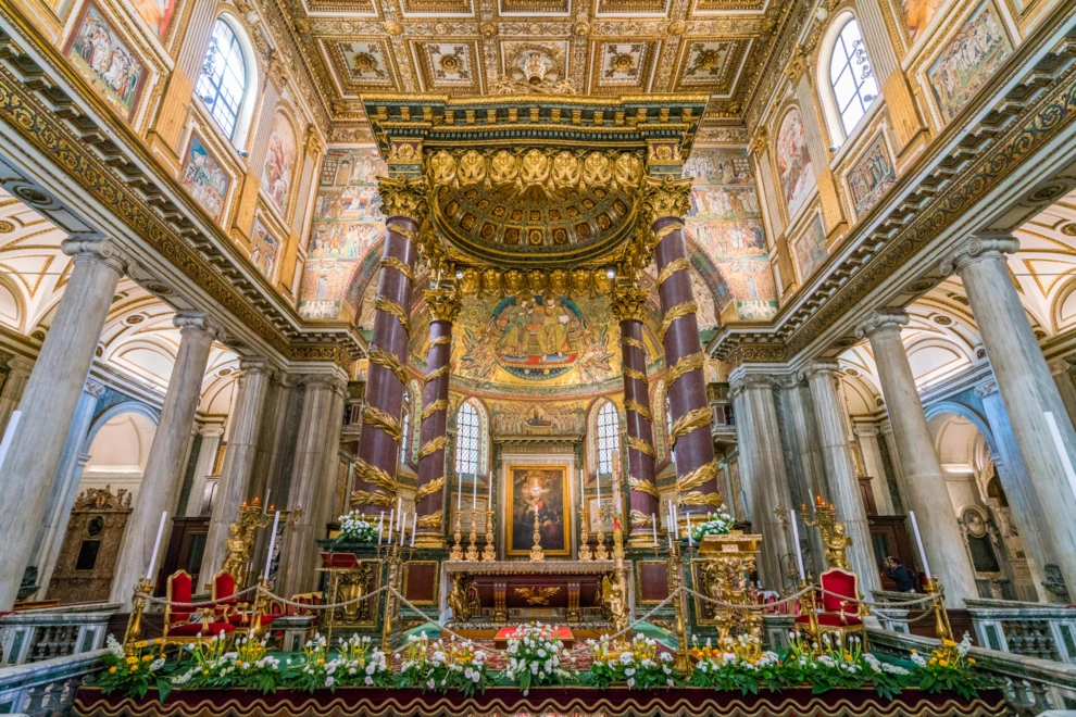 Μέσα στην εκκλησία βρίσκεται μια εικόνα της Παναγίας, η «Salus Populi Romani» («Υπέρ Υγείας του Λαού των Ρωμαίων»). Ένα βάζο με χρυσά τριαντάφυλλα, δωρεά του Φραγκίσκου το 2023, βρίσκεται ανάμεσα σε κηροπήγια κάτω από την εικόνα.