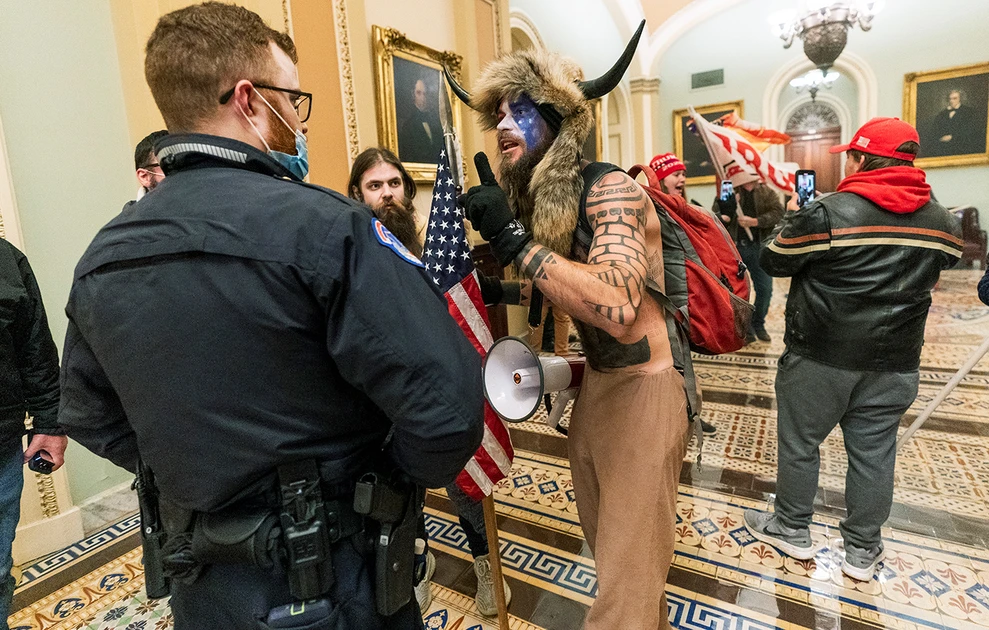 Στις 6 Ιανουαρίου 2021, ένας γυμνόστηθος άνδρας καλυμμένος με σκανδιναβικά τατουάζ και γούνες, με κέρατα στο κεφάλι και δόρυ στο χέρι, διέσχιζε το Καπιτώλιο των ΗΠΑ και καθόταν στη θέση του αντιπροέδρου στην αίθουσα της Γερουσίας. Το βαμμένο πρόσωπο του άνδρα, που έγινε γνωστός παγκοσμίως ως «Σαμάνος του QAnon», αποτέλεσε μία από τις πιο χαρακτηριστικές εικόνες της επίθεσης που συγκλόνισε το Κογκρέσο και προκάλεσε σοκ διεθνώς.