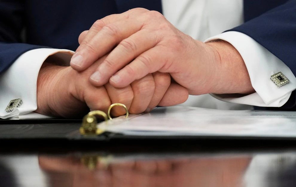 Ο Τραμπ, ενώ καθόταν στο Οβάλ Γραφείο και μιλούσε με δημοσιογράφους, κάλυπτε το σημείο αυτό του δεξιού του χεριού τοποθετώντας το αριστερό του χέρι πάνω του.