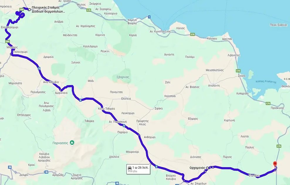 1) έξοδος από τον Αυτοκινητόδρομο στον Η/Κ Ανθήλης και κινούμενοι μέσω Μπράλου, Αμφίκλειας, Κάτω Τιθορέας, Ορχομενού να εισέρχονται στον Α/Κ Κάστρου (επισυνάπτεται σχετική οπτική απεικόνιση)