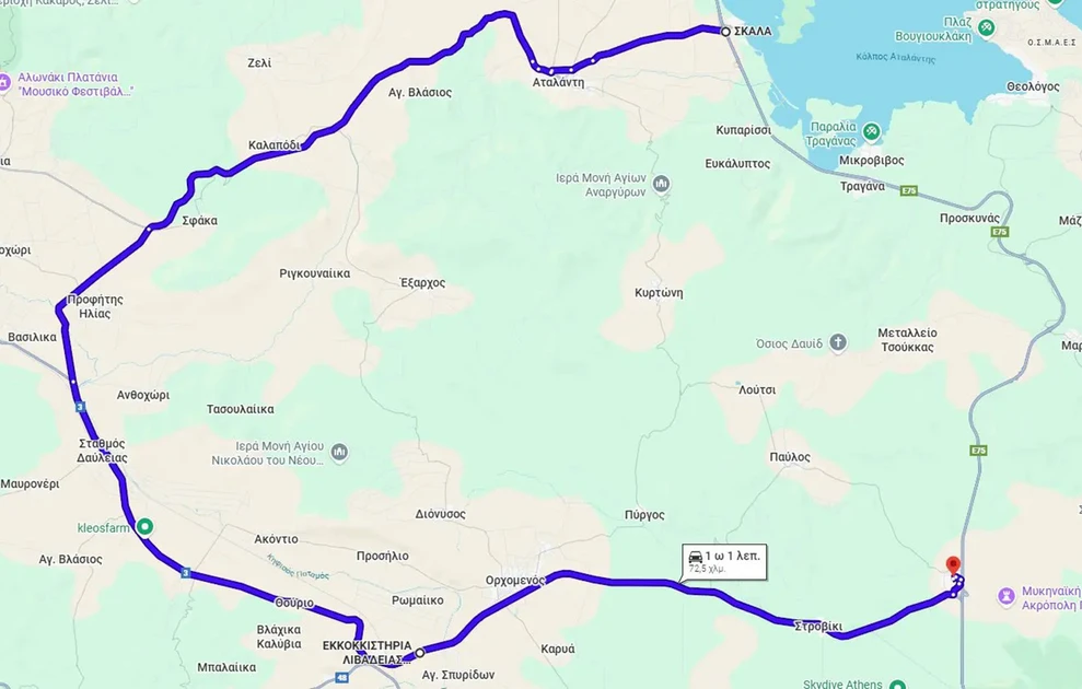 2) έξοδος από τον Αυτοκινητόδρομο στον Α/Κ Αταλάντης και κινούμενοι μέσω Αταλάντης και Ορχομενού, να εισέλθουν στον Α/Κ Κάστρου (επισυνάπτεται σχετική οπτική απεικόνιση)