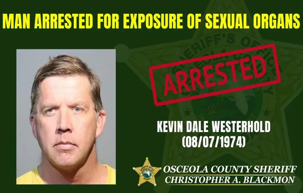 Σύμφωνα με υλικό από κάμερες ασφαλείας που εξέτασε η αστυνομία της κομητείας Οσεόλα, ο Κέβιν Ντέιλ Γουέστερχολντ φέρεται να κυκλοφορούσε γυμνός στους διαδρόμους του Windsor Hills Resort στο Κισίμι, εκθέτοντας τον εαυτό του σε κοινή θέα. Μάλιστα, όπως αναφέρει το δίκτυο WKRC, έξω από ένα από τα οικήματα ο Γουέστερχολντ πραγματοποίησε σεξουαλική πράξη με μια… ηλεκτρική σκούπα.