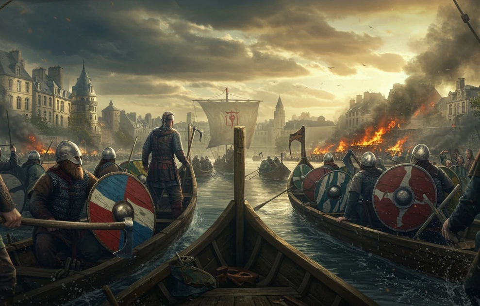 Οι Σκανδιναβοί επιδρομείς, με στόλο περίπου 120 πλοίων και χιλιάδες πολεμιστές, ανέβηκαν τον Σηκουάνα και έφτασαν ως την καρδιά του βασιλείου των Φράγκων. Για τους κατοίκους του Παρισιού, η εικόνα θα πρέπει να ήταν εφιαλτική: πάνοπλοι πολεμιστές από τον Βορρά, αμείλικτοι και αποφασισμένοι, λεηλατούσαν οικισμούς και σκόρπιζαν τον τρόμο στο πέρασμά τους.