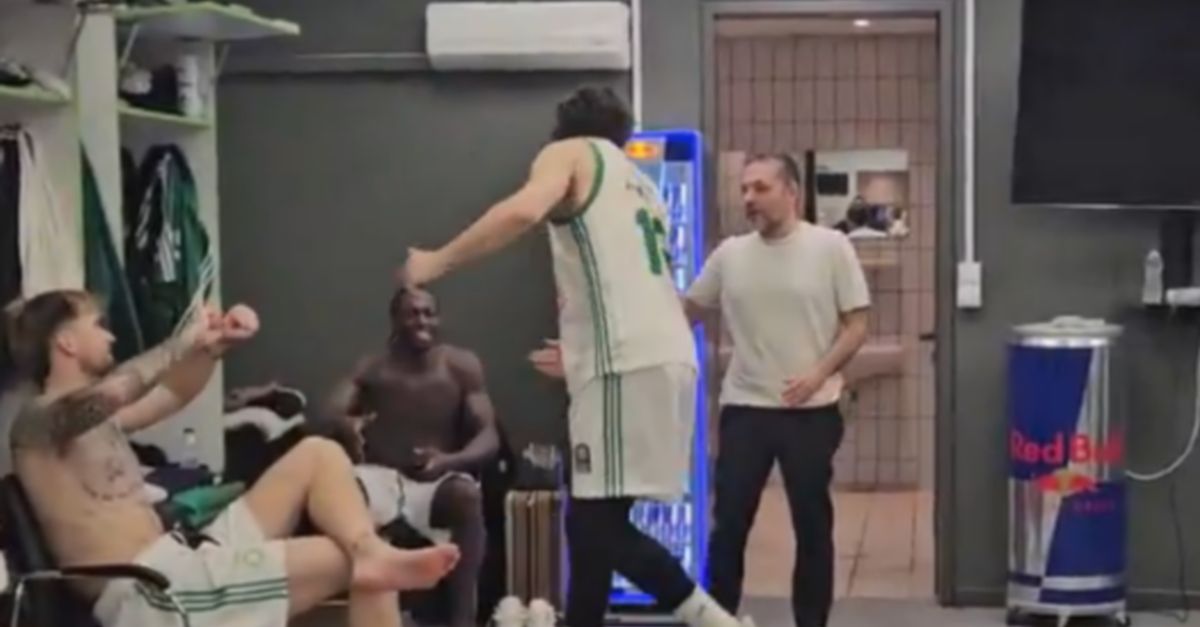 Ο Τσεντί Οσμάν αποθεώθηκε από τους συμπαίκτες του κατά την είσοδό του στα αποδυτήρια του Παναθηναϊκού μετά από τη νίκη στο ντέρμπι αιωνίων με τον Ολυμπιακό στο ΟΑΚΑ.