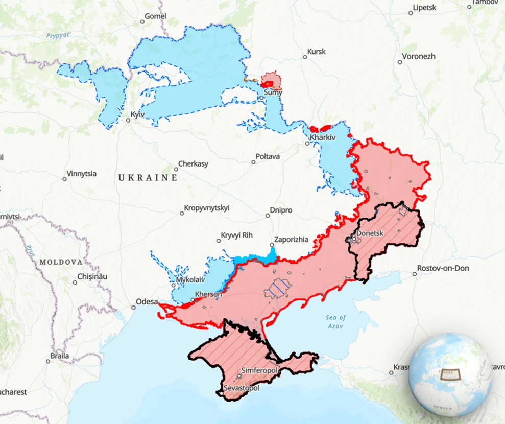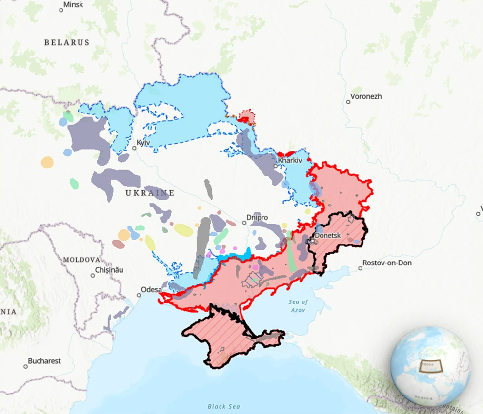 Η αμερικανική δεξαμενή σκέψης Ινστιτούτο Μελέτης του Πολέμου δημοσίευσε χάρτη με τα εδάφη που κατέχει η κάθε πλευρά, αλλά και που δείχνει τις περιοχές πλούσιες σε σπάνιες γαίες.