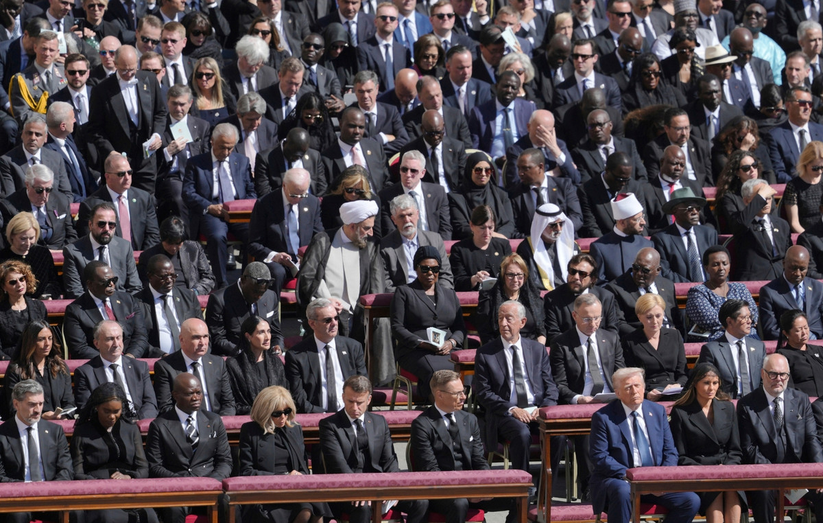 Στην τελετή παρέστησαν σημαντικές προσωπικότητες από όλο τον κόσμο. Ο Ντόναλντ Τραμπ, πρόεδρος των ΗΠΑ, συνοδευόμενος από τη σύζυγό του Μελάνια, κάθισε σε τιμητική θέση κοντά στη σορό του Πάπα, πλάι στους υποστηρικτές της Ουκρανίας, τον πρόεδρο της Εσθονίας Άλαρ Κάρις και τον πρόεδρο της Φινλανδίας Αλεξάντερ Στουμπ.