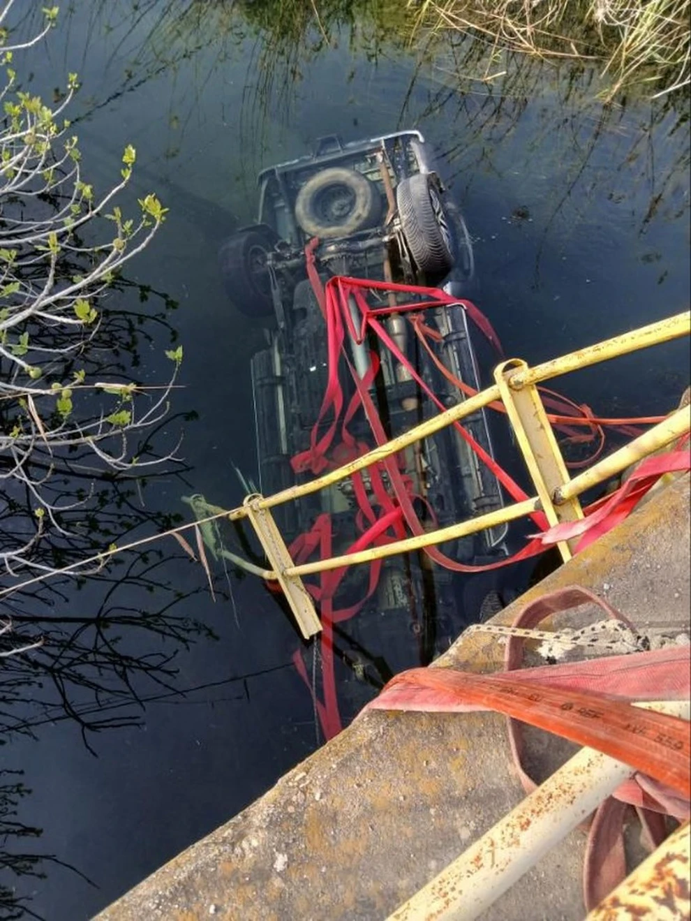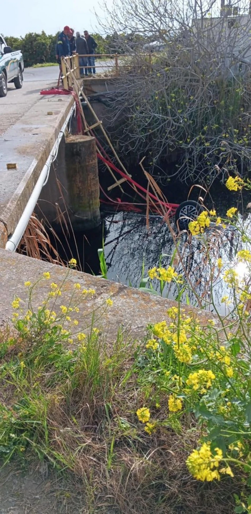 Λίγο πριν φθάσουν στο χωριό, ώρα 15:40, υπάρχει γέφυρα με σιδερένια κιγκλιδώματα. Το 4Χ4 κινείται στο ρεύμα του αλλά για άγνωστους λόγους με την είσοδό του στη γέφυρα, αυτός που το οδηγεί, χάνει τον έλεγχο. Με σφοδρότητα πέφτει στα κιγκλιδώματα της δεξιάς πλευράς της γέφυρας και εκτρέπεται, ανατρέπεται, πέφτει σε κενό 3 μέτρων και βυθίζεται με τον «ουρανό» στο κανάλι που έχει βάθος πάνω από 2,5 μέτρα. Την ίδια στιγμή πάνω στη γέφυρα βρίσκεται αλλοδαπός άνδρας, που ψαρεύει, ο οποίος παρασύρεται από το όχημα και τραυματίζεται.