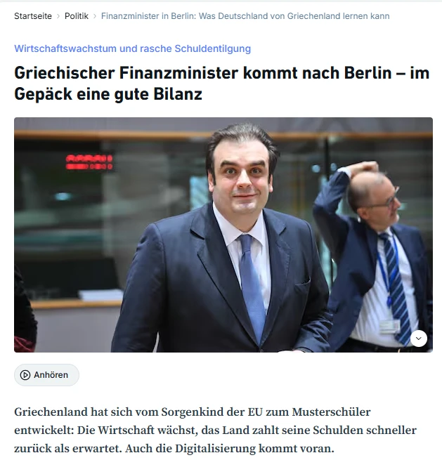 Η εικόνα της Ελλάδας στις διεθνείς συναντήσεις έχει αλλάξει δραματικά. Όπως σημειώνει το γερμανικό δημοσίευμα RND, «όταν οι Έλληνες Υπουργοί Οικονομικών ταξίδευαν στο Βερολίνο τις τελευταίες δεκαετίες, συνήθως το έκαναν ως αιτούντες».