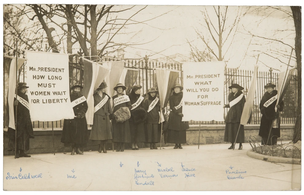 1917: Οι σουφραζέτες της National Woman’s Party, γνωστές ως «Silent Sentinels», ξεκινούν να στέκονται καθημερινά έξω από τον Λευκό Οίκο με πανό, απαιτώντας από τον πρόεδρο Γούντροου Γουίλσον να στηρίξει συνταγματική κατοχύρωση της ψήφου των γυναικών. Οι σιωπηλές πικετοφορίες, μέσα στο φορτισμένο κλίμα του Α’ Παγκοσμίου Πολέμου, οδηγούν αργότερα σε συλλήψεις και φυλακίσεις, εξέλιξη που εντείνει τη δημόσια πίεση υπέρ της 19ης Τροπολογίας.