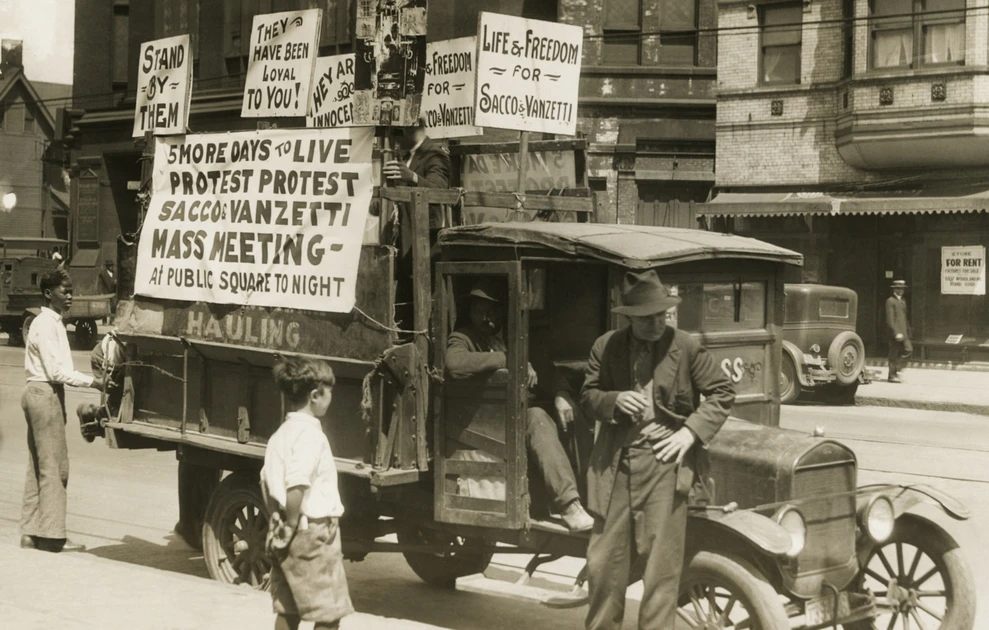 1921: Οι Ιταλοαμερικανοί αναρχικοί Νίκολα Σάκο και Μπαρτολομέο Βαντζέτι καταδικάζονται σε θάνατο για φόνο, μετά από μια πολύκροτη δίκη στη Μασαχουσέτη. Η υπόθεσή τους προκαλεί διεθνή κατακραυγή: χιλιάδες άνθρωποι σε όλο τον κόσμο διαδηλώνουν, θεωρώντας ότι οι δύο άνδρες καταδικάστηκαν λόγω της μεταναστευτικής τους καταγωγής και των ριζοσπαστικών τους πεποιθήσεων, και όχι βάσει αδιάσειστων στοιχείων. Πολλοί διανοούμενοι, συγγραφείς και πολιτικοί ηγέτες παρεμβαίνουν υπέρ τους, ενώ η δίκη τους μένει στην ιστορία ως σύμβολο της δικαστικής πλάνης και της προκατάληψης απέναντι στους μετανάστες και τους πολιτικούς αντιφρονούντες