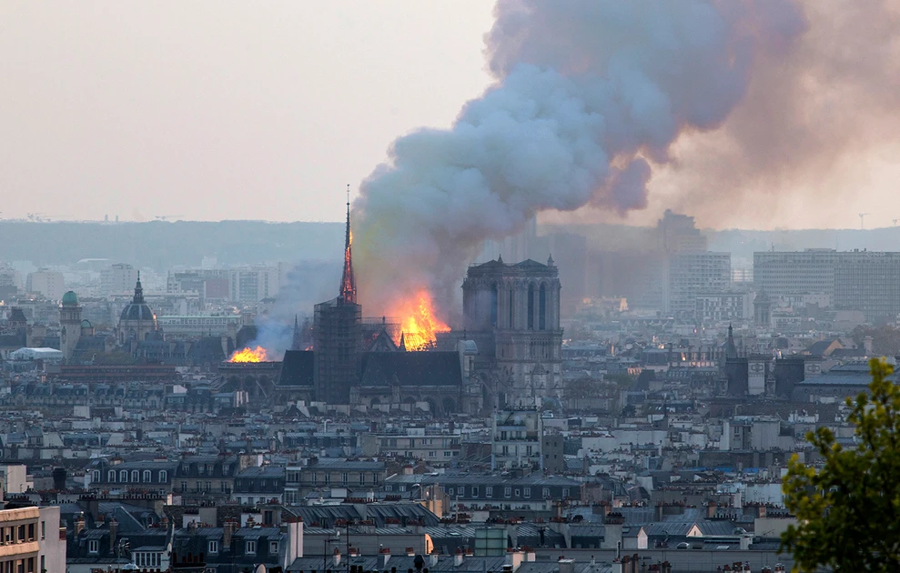 2019: Μεγάλη πυρκαγιά καταστρέφει την οροφή της Παναγίας των Παρισίων και ρίχνει την ξύλινη στέγη και τον οβελό του εμβληματικού καθεδρικού ναού. Η φωτιά συγκλονίζει τη Γαλλία και ολόκληρο τον κόσμο, προκαλώντας παγκόσμια συγκίνηση και κινητοποίηση για την αποκατάστασή του.