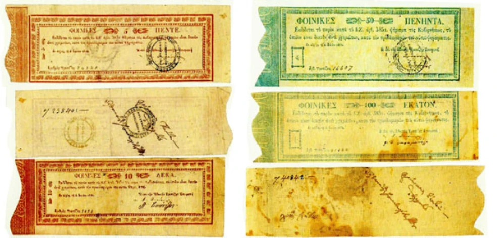 1831: Εκτυπώνονται στο Ναύπλιο τα πρώτα χαρτονομίσματα, σηματοδοτώντας την απαρχή του χρηματοπιστωτικού συστήματος στο ανεξάρτητο ελληνικό κράτος.