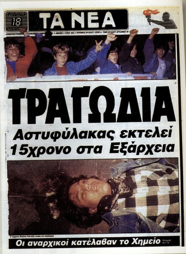 1985: Ο 15χρονος Μιχάλης Καλτέζας δολοφονείται από τον αστυνομικό Αθανάσιο Μελίστα, κατά τη διάρκεια επεισοδίων που ξεσπούν μετά την πορεία για την επέτειο του Πολυτεχνείου. Ο Μελίστας πυροβολεί τον Καλτέζα στο πίσω μέρος του κεφαλιού, την ώρα που ο νεαρός τρέχει προς την πλατεία Εξαρχείων μαζί με άλλους διαδηλωτές. Η δολοφονία προκαλεί οργή, συνεχείς κινητοποιήσεις και έντονη πολιτική αντιπαράθεση, ενώ θα αποτελέσει ένα από τα μεγαλύτερα περιστατικά αστυνομικής βίας.