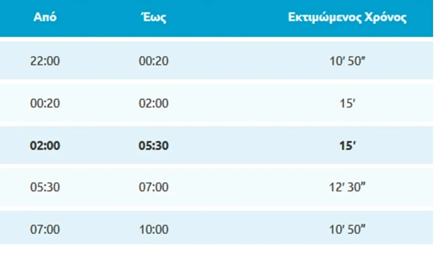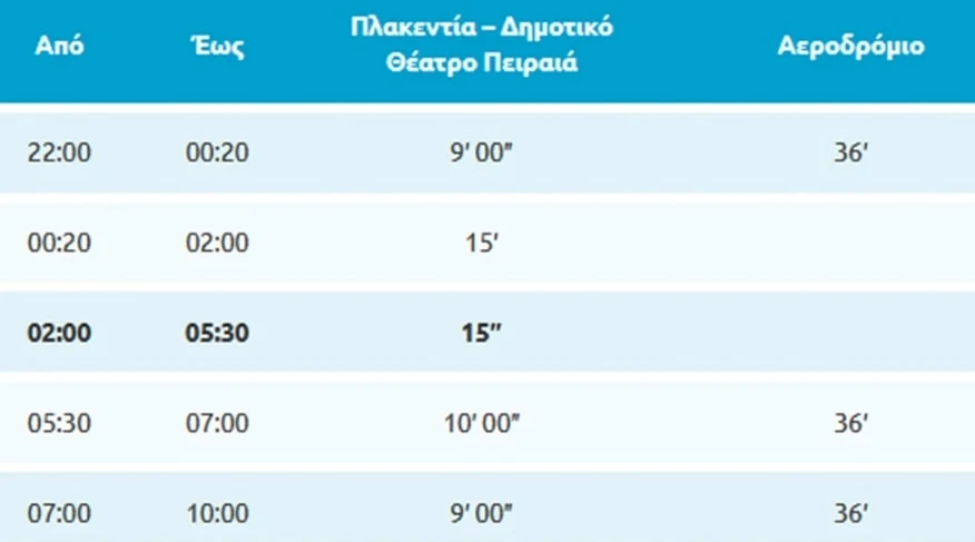 Συχνότητες διέλευσης γραμμής 3 του μετρό κάθε Σάββατο από 22:00 έως 10:00