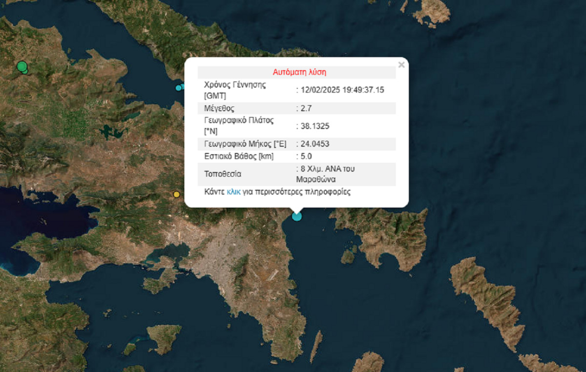 Σύμφωνα με το Γεωδυναμικό Ινστιτούτο, το επίκεντρο εντοπίζεται 8 Χλμ. ΑΝΑ του Μαραθώνα.