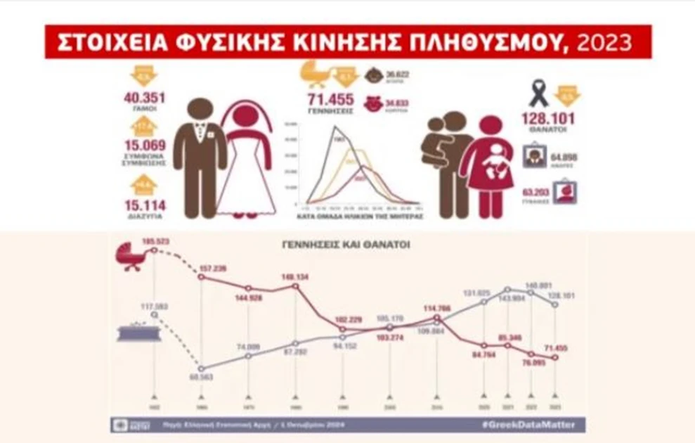 Τα τελευταία χρόνια σύμφωνα με τα γραφήματα και τα στοιχεία, έχουμε 50.000 περισσότερους θανάτους σε σχέση με τις γεννήσεις.