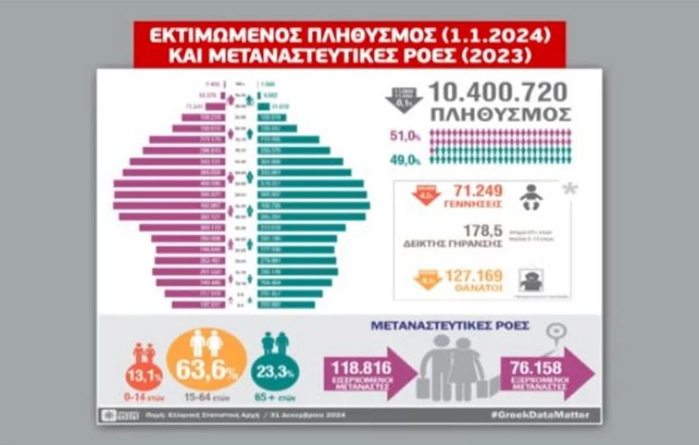 Εκτιμώμενος πληθυσμός (1/1/24) και μεταναστευτικές ροές (2023)