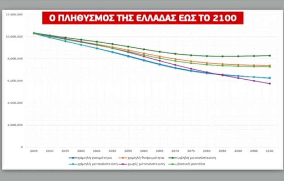 Ο πληθυσμός της Ελλάδας έως το 2100 (εκτίμηση)