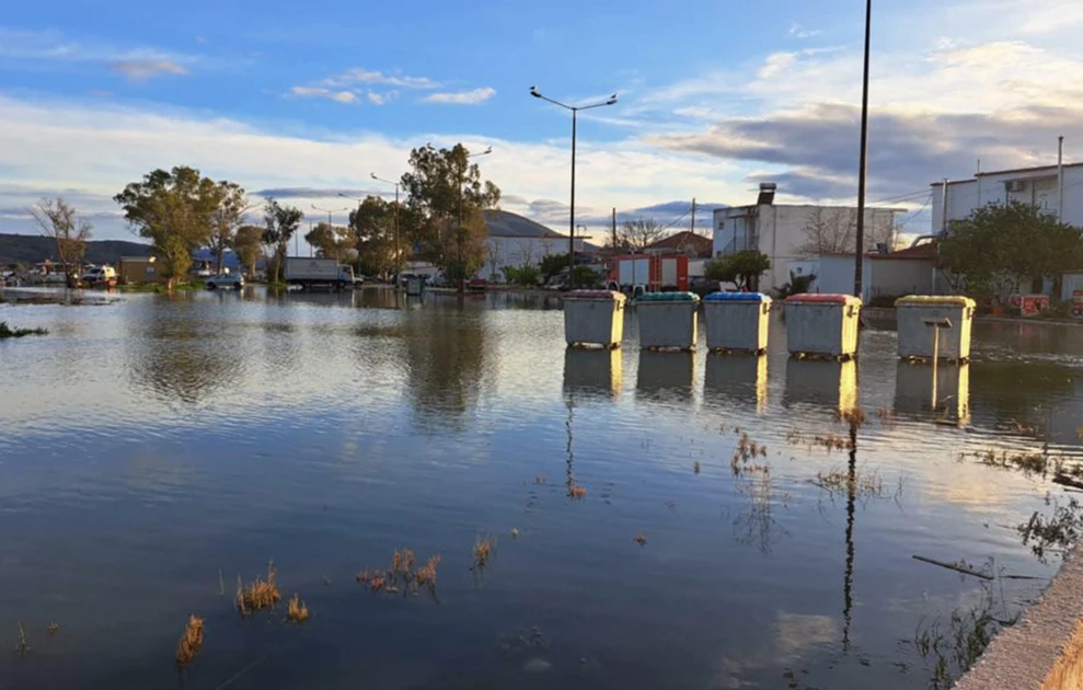 Ανάλογη είναι η εικόνα και στη Σαγιάδα, σύμφωνα με την ΕΡΤ, όπου η άνοδος της στάθμης της θάλασσας οδήγησε σε κάλυψη δρόμων και κοινόχρηστων χώρων. Σύμφωνα με στοιχεία και φωτογραφίες που δημοσιοποίησε η Δημοτική Κοινότητα Σαγιάδας, το παραλιακό μέτωπο του οικισμού πλημμύρισε, επηρεάζοντας σταθμευμένα οχήματα ενώ προκλήθηκαν προβλήματα στη διαχείριση των απορριμμάτων λόγω της μετακίνησης κάδων από την ορμή των υδάτων.