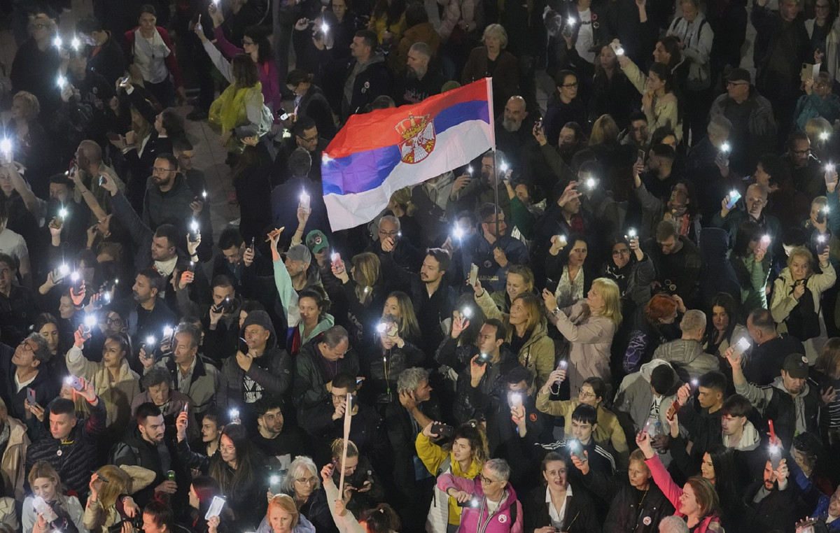 Περίπου 300.000 πολίτες βρέθηκαν στους δρόμους του Βελιγραδίου το βράδυ του Σαββάτου κάνοντας τη νύχτα – μέρα με τους φακούς των κινητών τους και διαμαρτυρόμενοι ενάντια στον πρόεδρο Βούτσιτς με αφορμή το δυστύχημα στο σταθμό του τρένου στο Νόβι Σαντ που κόστισε τη ζωή σε 15 ανθρώπους.