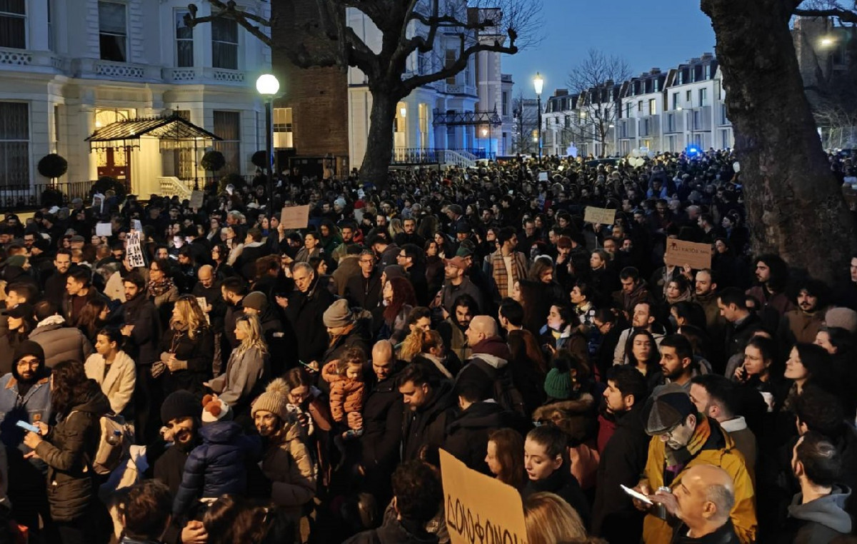 Με αυτούς τους στίχους από το ποίημα του Γιάννη Ρίτσου «Το στίγμα της απουσίας», ολοκληρώθηκε μια μεγαλειώδης συγκέντρωση στο Λονδίνο το βράδυ της Παρασκευής, με αφορμή τη συμπλήρωση δύο ετών από το δυστύχημα των Τεμπών.