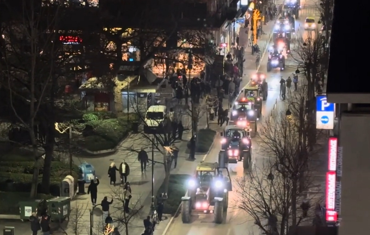 Δεκάδες αγρότες συγκεντρώθηκαν το απόγευμα της Παρασκευής στο κέντρο της Λάρισας με τα τρακτέρ τους προερχόμενοι από το αγροτικό μπλόκο της Γυρτώνης.