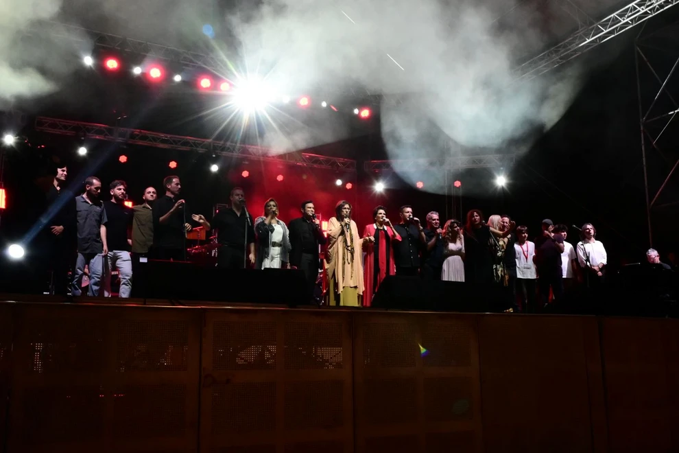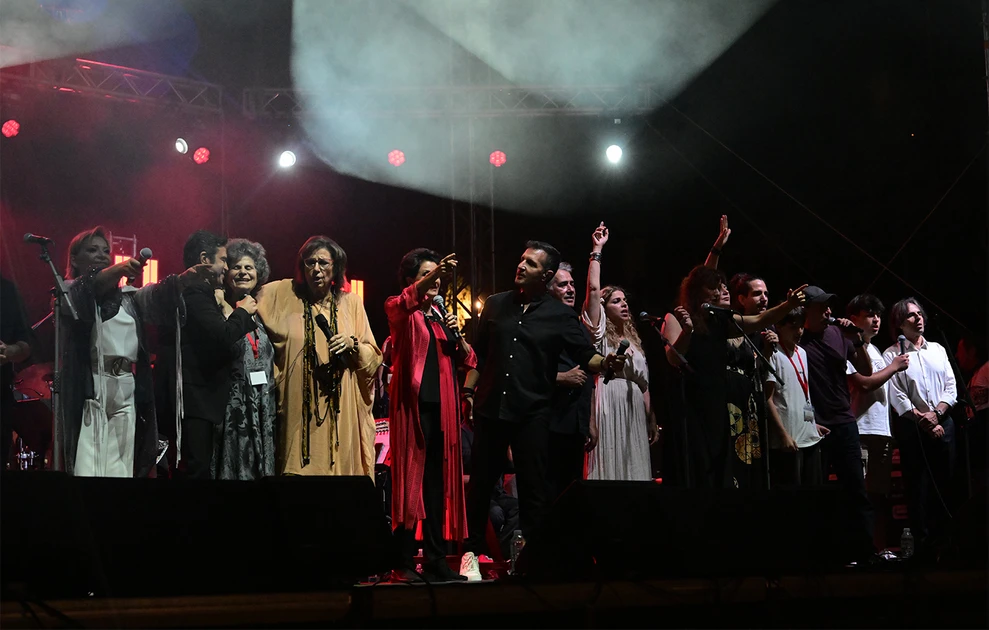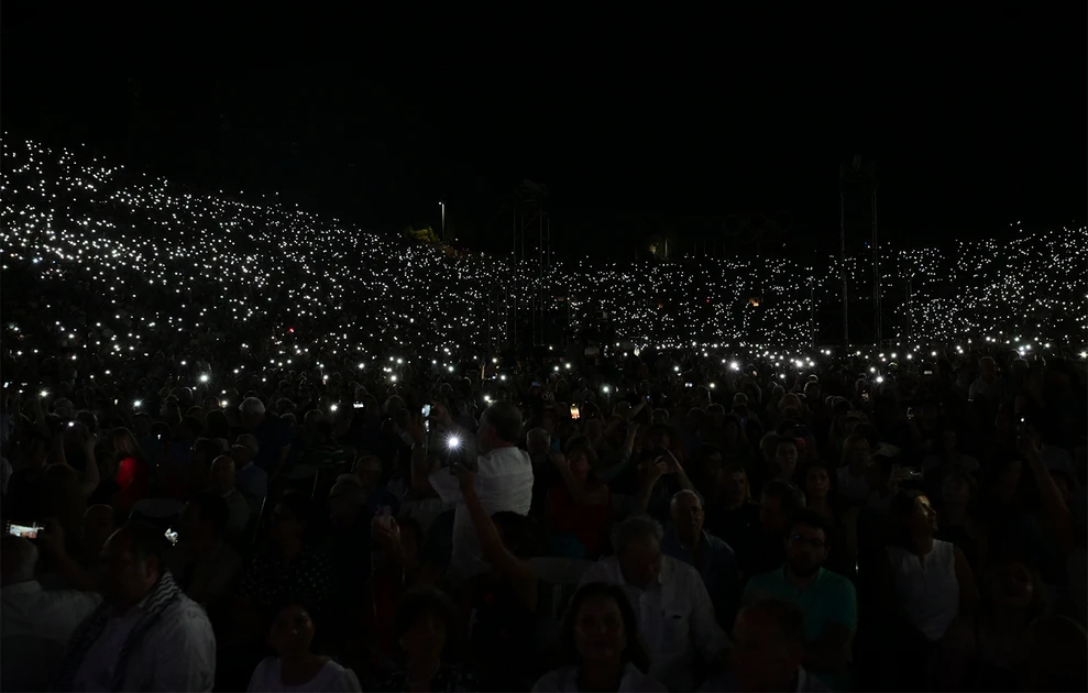‘Ανθρωποι όλων των ηλικιών έδωσαν το «παρών» τιμώντας τον Μίκη Θεοδωράκη, ενώ δεν ήταν λίγες οι φορές που μετατράπηκαν σε χορωδία συνοδεύοντας τους καλλιτέχνες.