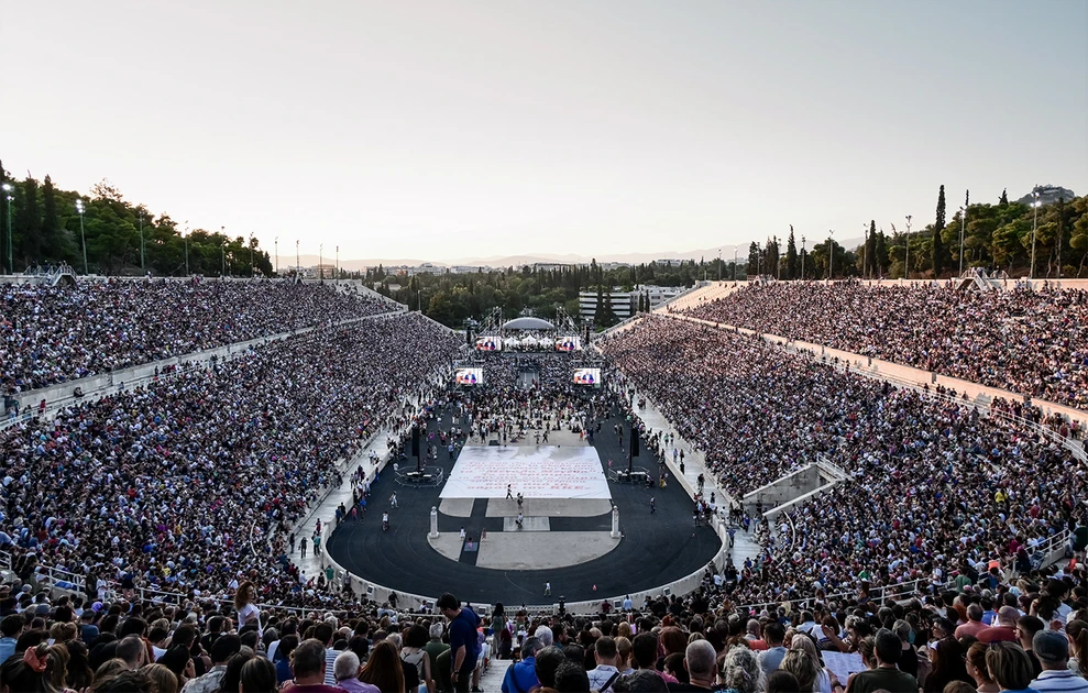 Μια πραγματικά ιστορική συναυλία διοργάνωσε, το βράδυ της Τετάρτης, η ΚΕ του ΚΚΕ και η οικογένεια του Μίκη Θεοδωράκη για τα 100 χρόνια από τη γέννηση του μεγάλου συνθέτη, στο κατάμεστο Καλλιμάρμαρο Παναθηναϊκό Στάδιο.