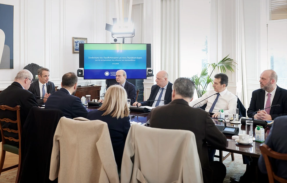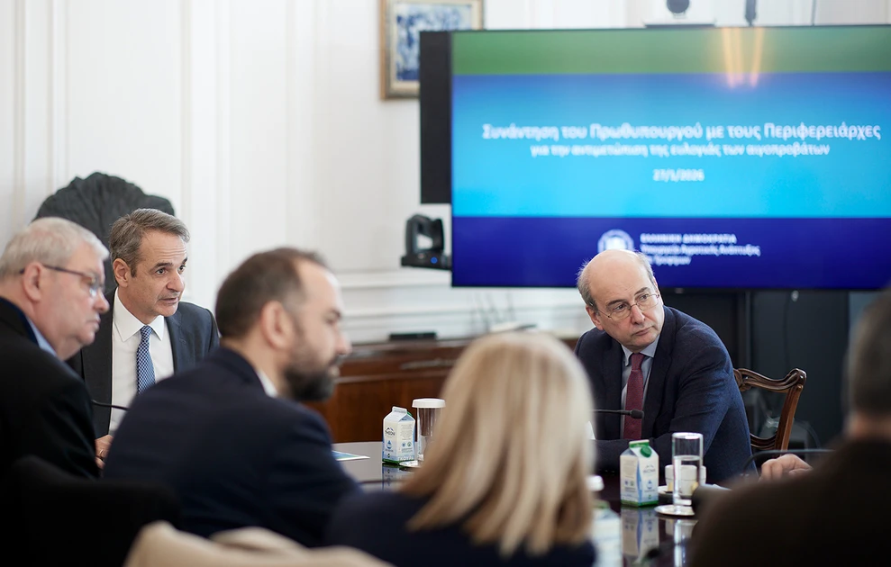 Σε σύσκεψη στο Μέγαρο Μαξίμου, με αντικείμενο την εφαρμογή των μέτρων βιοασφάλειας για την αντιμετώπιση της ευλογιάς των αιγοπροβάτων, προήδρευσε το πρωί ο πρωθυπουργός, Κυριάκος Μητσοτάκης. Κατά τη διάρκεια της σύσκεψης τονίστηκε η κρισιμότητα του επόμενου τριμήνου και η ανάγκη οριζόντιας και αυστηρής εφαρμογής των μέτρων βιοασφάλειας, ώστε να αξιοποιηθεί η αποκλιμάκωση των κρουσμάτων που έχει καταγραφεί τον χειμώνα.