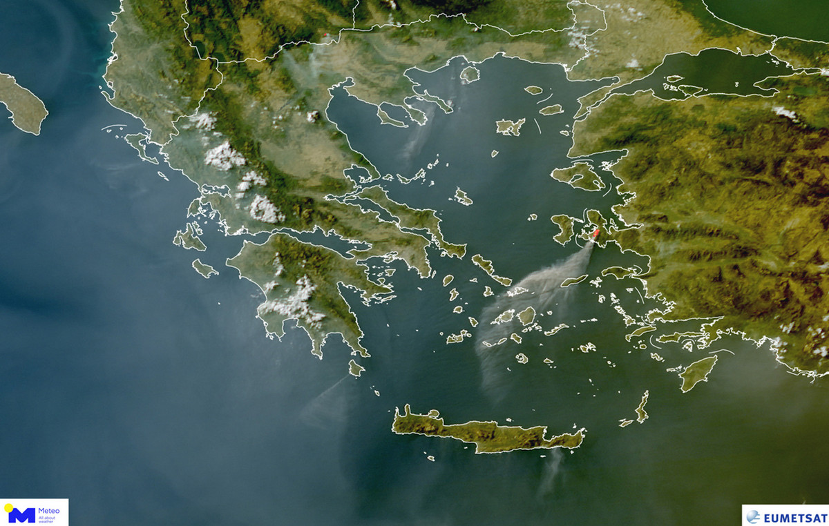 Σκέπασαν την Ελλάδα οι καπνοί από τις δασικές πυρκαγιές σε Χαλκιδική, Ιεράπετρα και Κύθηρα – Δορυφορική φωτογραφία