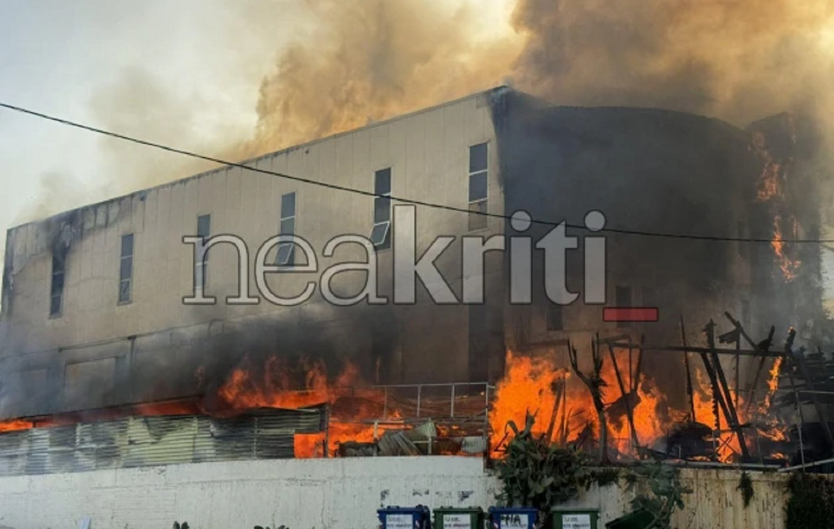 Φωτιά σε εργοστάσιο ξυλείας στο Ηρακλείο – Μήνυμα του 112 – Σύννεφα καπνού έχουν σκέπάσει την πόλη της Κρήτης