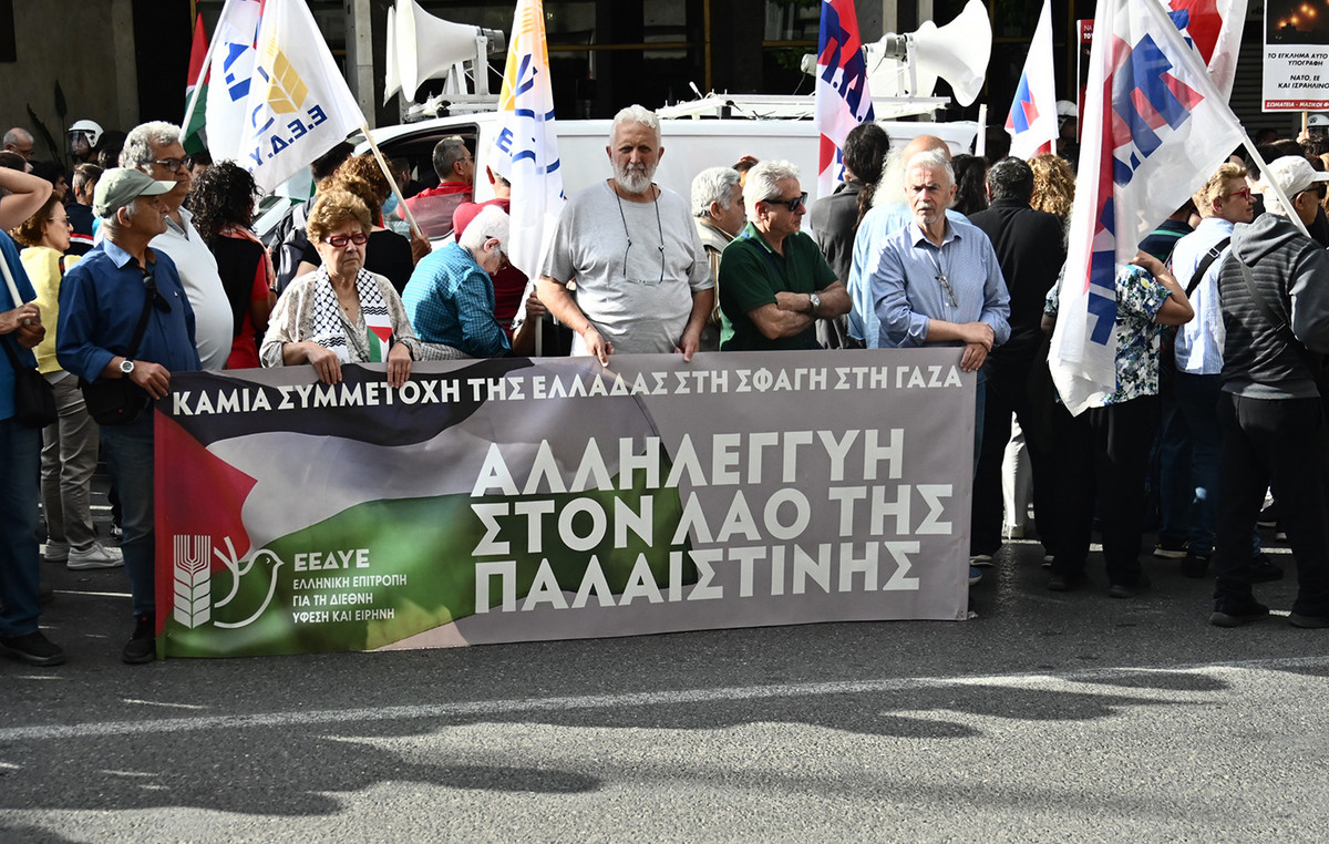 Σημαίες του Ιράν και μηνύματα κατά του Ισραήλ σε συγκέντρωση στο Σύνταγμα για τη συμπλήρωση δύο ετών από το ναυάγιο της Πύλου