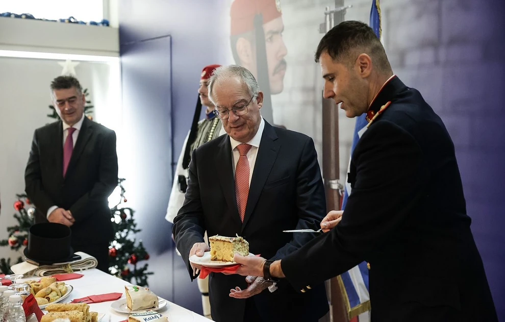 Ο Πρόεδρος της Δημοκρατίας, Κώστας Τασούλας, μετά την πρωινή δοξολογία στον Καθεδρικό Ναό Αθηνών, μετέβη στην Προεδρική Φρουρά για την κοπή της πρωτοχρονιάτικης πίτας.