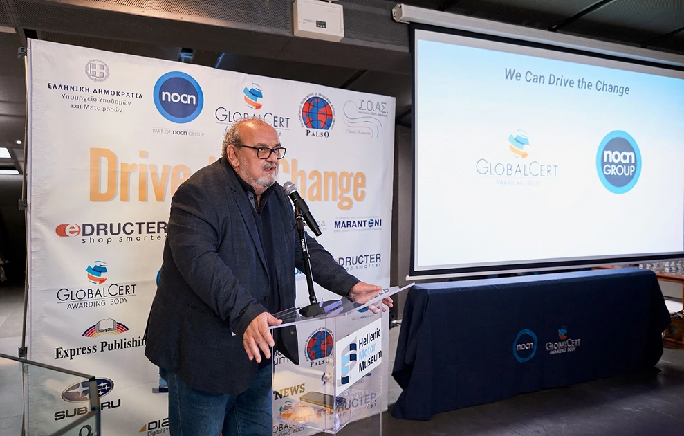 Σε κλίμα δημιουργικότητας και υπευθυνότητας πραγματοποιήθηκε η Τελετή Βράβευσης του Πανελλήνιου Μαθητικού Διαγωνισμού “Drive the Change: Together We Can Change the Greek Driving Mentality” την Κυριακή, 19 Οκτωβρίου 2025 στο Ελληνικό Μουσείο Αυτοκινήτου. Ο διαγωνισμός αποτέλεσε μία πρωτοβουλία της GlobalCert σε συνεργασία με το Ινστιτούτο Οδικής Ασφάλειας (Ι.Ο.ΑΣ.) «Πάνος Μυλωνάς» και υπό την αιγίδα του Υπουργείου Υποδομών και Μεταφορών.