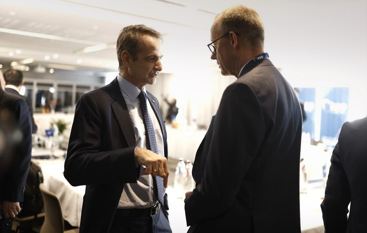 Τετ α τετ Μητσοτάκη με τον Φρίντριχ Μερτς λίγο πριν τη συνεδρίαση των ηγετών του ΕΛΚ