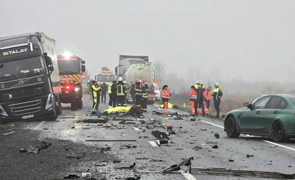 Λίγο πριν τη μία όμως το μεσημέρι στον αυτοκινητόδρομο DN6 – E70, έναν από τους βασικούς οδικούς άξονες της περιοχής, λίγα χιλιόμετρα μετά την Καρασέβες ο χρόνος πάγωσε. Κατά τη διάρκεια προσπέρασης, το όχημα βγήκε στο αντίθετο ρεύμα και συγκρούστηκε μετωπικά με νταλίκα. Η σύγκρουση ήταν σφοδρή, με αποτέλεσμα το βαν να διαλυθεί.