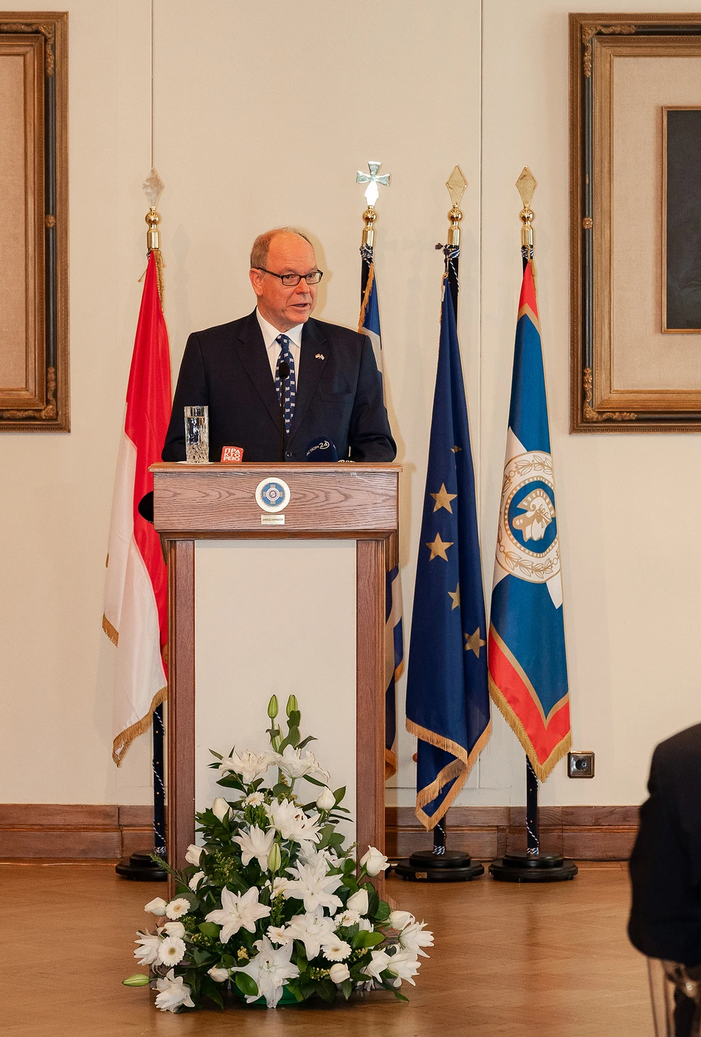 «Με ιδιαίτερη τιμή, η Αθήνα υποδέχθηκε την Α.Γ.Υ. τον πρίγκιπα Αλβέρτο Β΄ του Μονακό, έναν από τους πιο συνεπείς και δραστήριους υπερασπιστές του περιβάλλοντος διεθνώς. Μέσα από το Prince Albert II of Monaco Foundation και πρωτοβουλίες, όπως το Monaco Explorations, έχει συμβάλλει καθοριστικά στην ενίσχυση της επιστημονικής γνώσης, στην προστασία των θαλάσσιων οικοσυστημάτων και στην ανάπτυξη πρωτοβουλιών για την ευαισθητοποίηση των κοινωνιών σε ζητήματα περιβαλλοντικής ευθύνης».