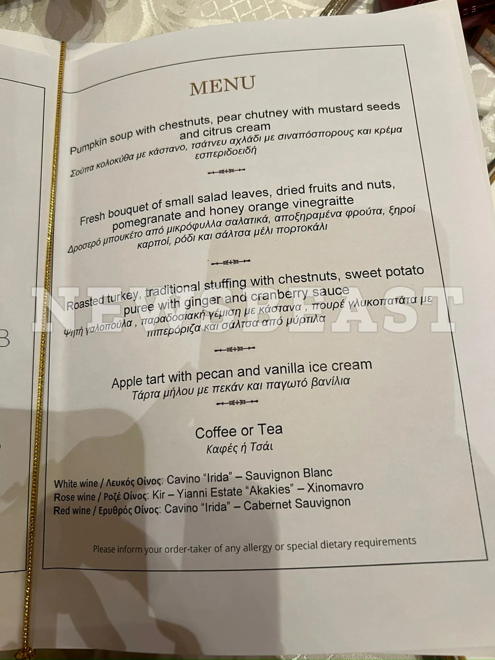 Στην ομιλία της μίλησε συγκινημένη για το γεγονός ότι είναι πρώτη της φορά που θα περάσει την ημέρα των Ευχαριστιών στην Ελλάδα μακριά από την πατρίδα της τις ΗΠΑ. Είπε ότι αγαπά την Ελλάδα διότι είναι μια χώρα που ζει με την καρδιά της.