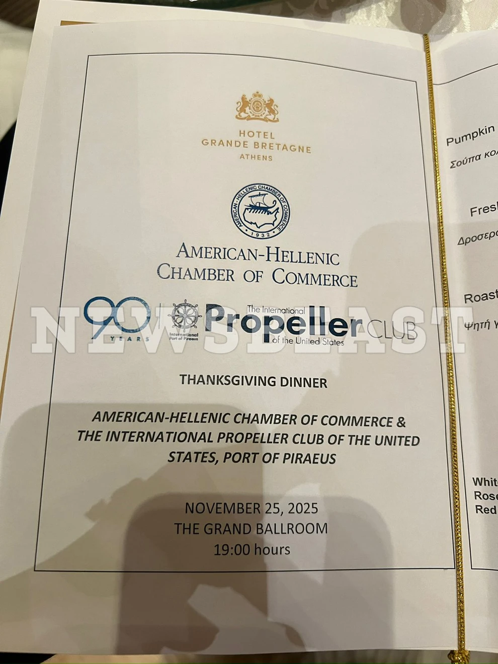Σε μια κατάμεστη αίθουσα σε κεντρικό ξενοδοχείο της Αθήνας η πρέσβης των ΗΠΑ, Κίμπερλι Γκίλφοϊλ, καθώς ήταν το τιμώμενο πρόσωπο στο δείπνο που οργάνωσε το ΕλληνοΑμερικανικό Επιμελητήριο και το Propeller Club για την ημέρα των Ευχαριστιών.