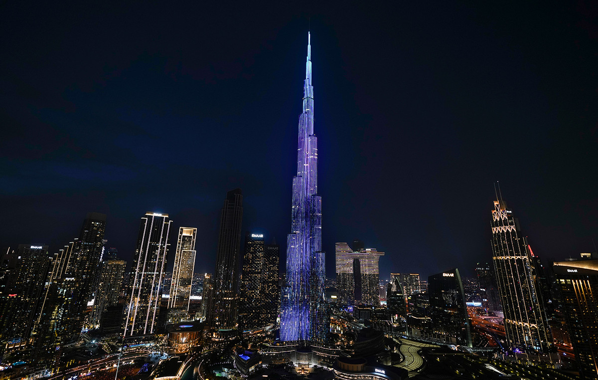 Το Μπουρτζ Χαλίφα, ένα αρχιτεκτονικό θαύμα ύψους 828 μέτρων που ολοκληρώθηκε το 2010 από την Emaar Properties, κυριαρχεί πάνω από παγκόσμια μνημεία όπως το Empire State Building της Νέας Υόρκης (443 μέτρα) και τον Central Park Tower (472 μέτρα), το τελευταίο από τα οποία είναι το υψηλότερο κυρίως οικιστικό κτίριο.