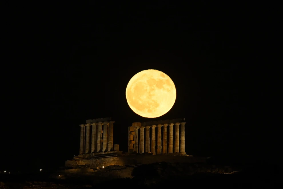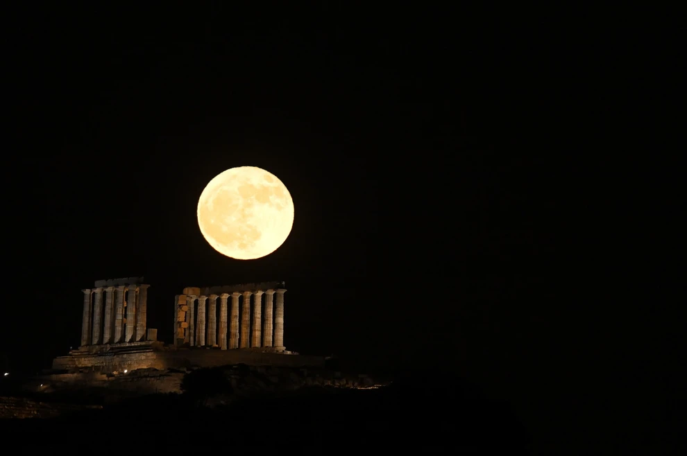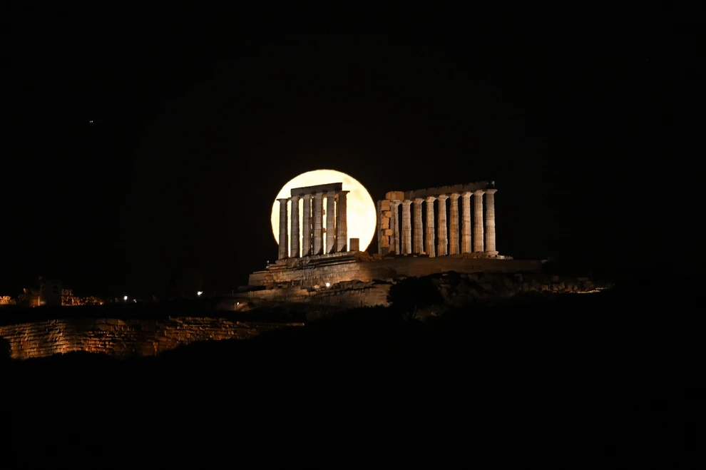 Στο Σούνιο, η φύση σκηνοθέτησε ένα ονειρικό σκηνικό: το φεγγάρι ανέτειλε πίσω από τον ναό του Ποσειδώνα, δημιουργώντας μια εικόνα σχεδόν μεταφυσική.