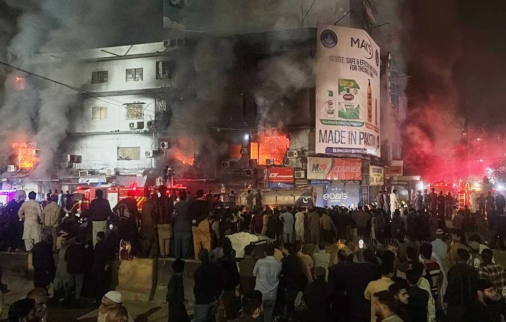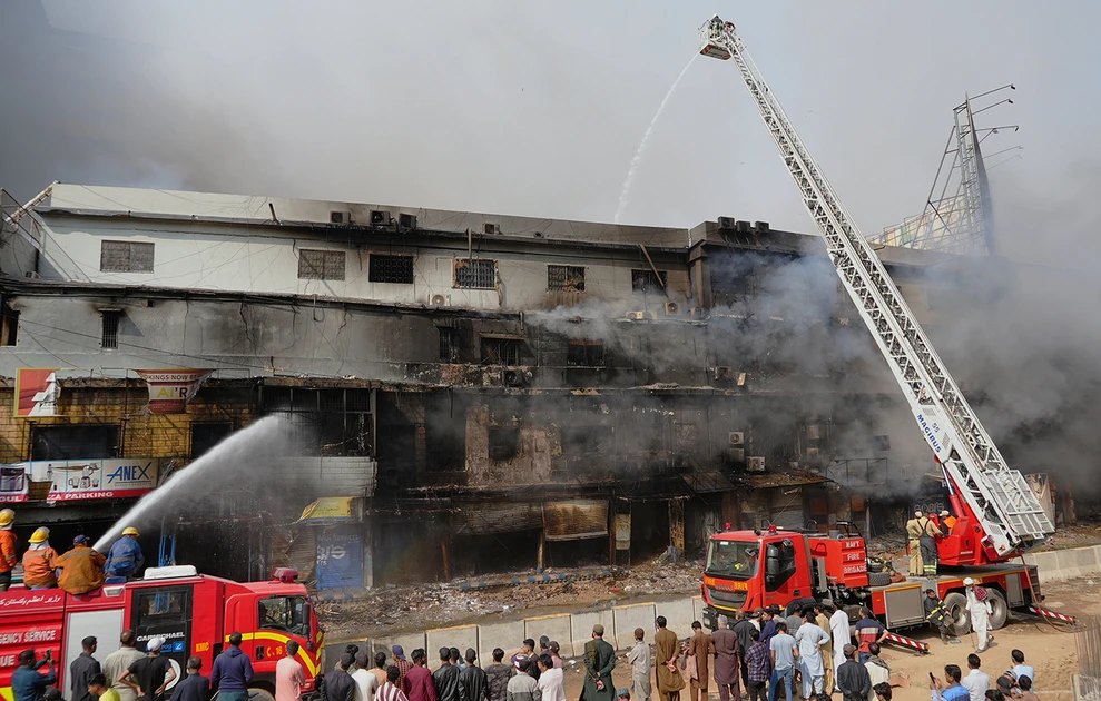 Η πυρκαγιά ξέσπασε αργά το βράδυ του Σαββάτου στο πολυώροφο εμπορικό κέντρο Gul Plaza στην επιχειρηματική συνοικία της πόλης και έκαιγε για περισσότερο από 24 ώρες, εμποδίζοντας τις προσπάθειες διάσωσης στην πυκνοκατοικημένη περιοχή.