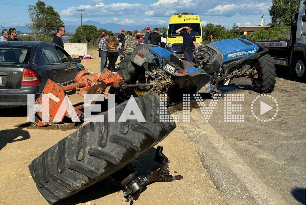Σύμφωνα με πληροφορίες του ilialive.gr, σοβαρά τραυματίστηκε ο οδηγός του τρακτέρ, ενώ δύο γυναίκες που επέβαιναν στο πολυτελές SUV φέρουν ελαφρύτερα τραύματα.